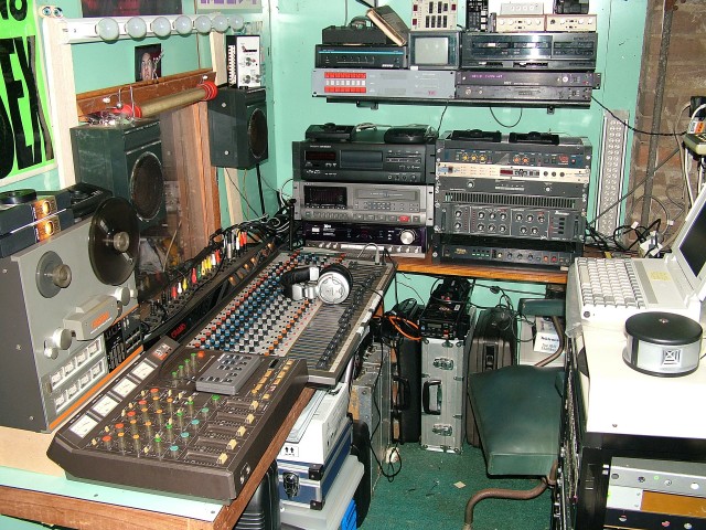 A very young me in the studio just after it was built, using two 4-track cassette machines. Everything was analogue in those days with the exception of a digital delay effects unit. Ahh, those were the days...
